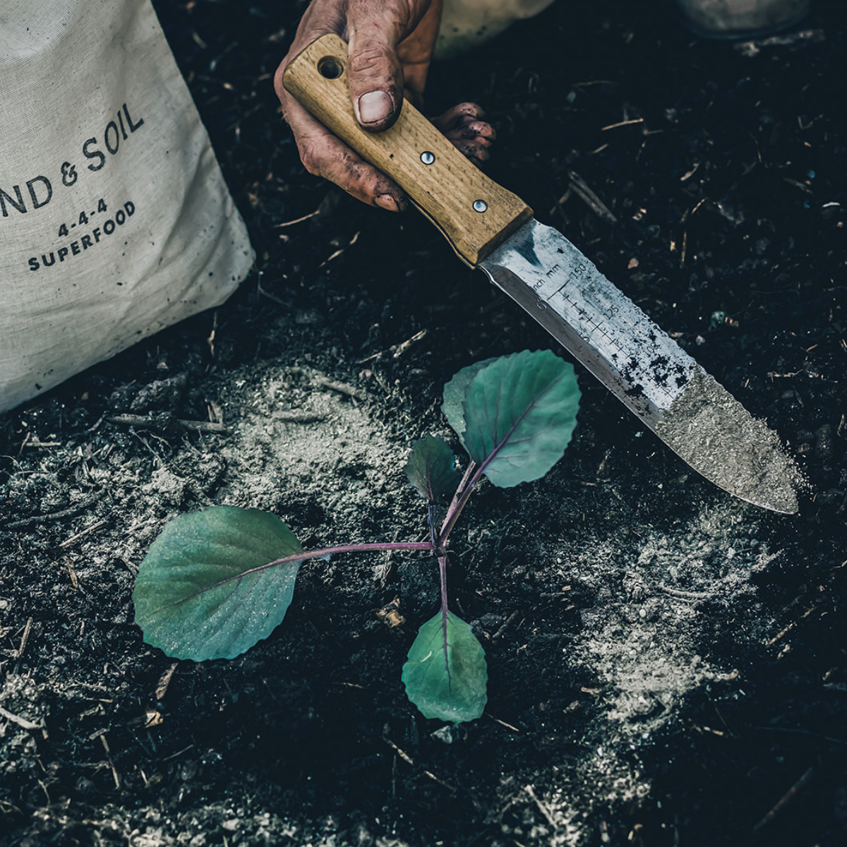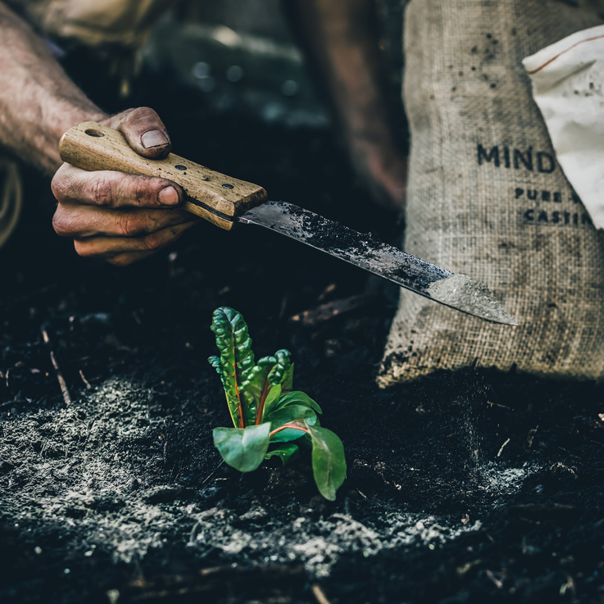 • Feeding: Dip the Hori Hori knife into your Worm Castings or Superfood to easily apply and spread your amendments.
